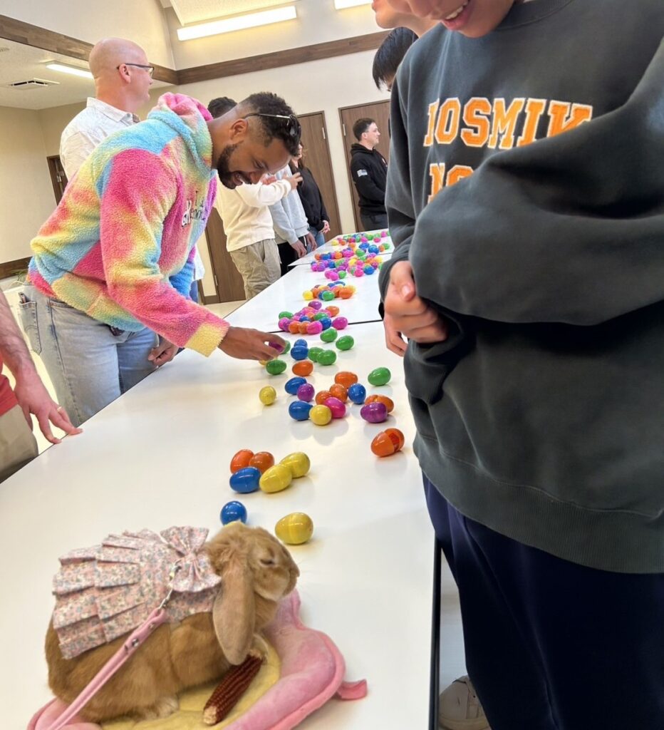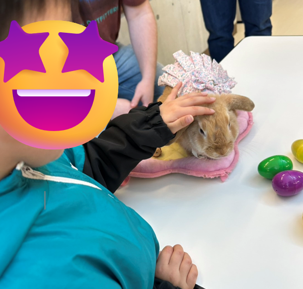 エッグハントをする横で静かに見守っているうさぎと触れ合う機会もあり、子どもたちも大喜びでした🥰♪