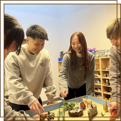 こどもと一緒に遊ぶ、悩む、考えるなど「一緒におこなう」ということを大切にしています。楽しいことは「楽しかった」、嫌なことは「あんなこともあったな」と笑って生活を振り返ることができたらいいなと思います。